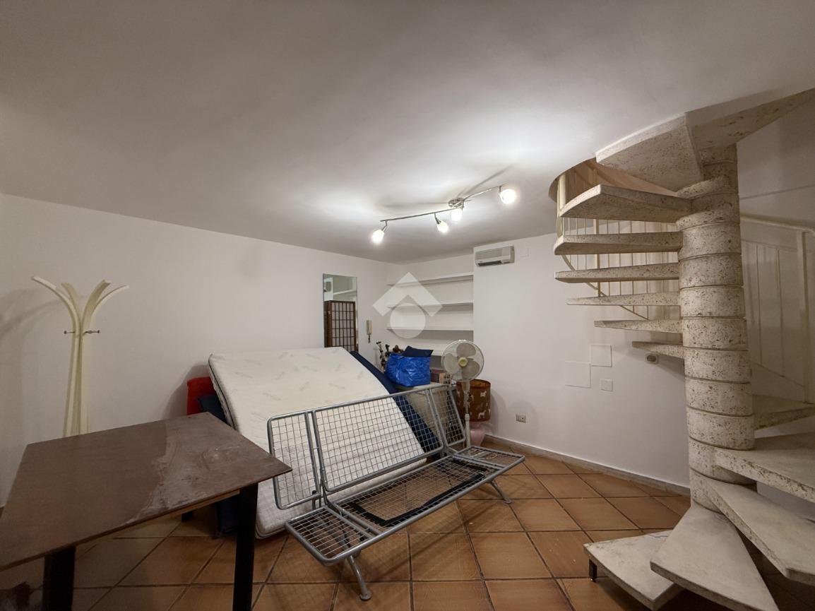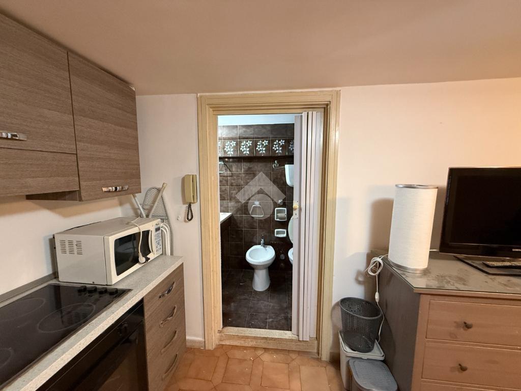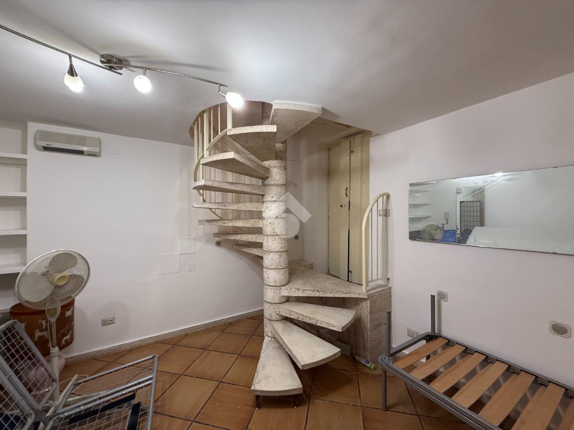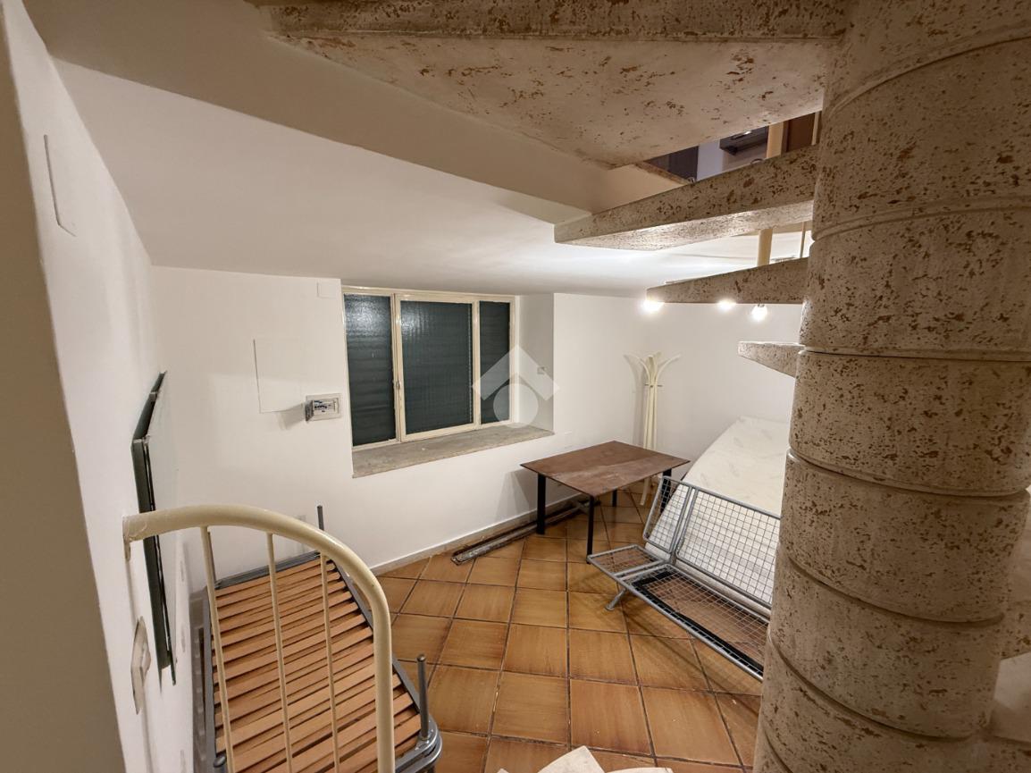Tramite una scala a chiocciola interna si accede al piano superiore, dove si sviluppa un secondo ambiente composto da una comoda cucina, anch’essa dotata di finestra con affaccio esterno, e da un bagno completo di doccia, funzionale e ben distribuito.