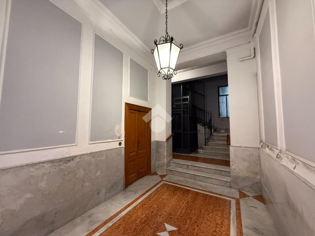 L’ingresso si apre su un ampio e luminoso ambiente principale, caratterizzato da una finestra con affaccio diretto su via De Romita, che conferisce ottima visibilità e luce naturale.