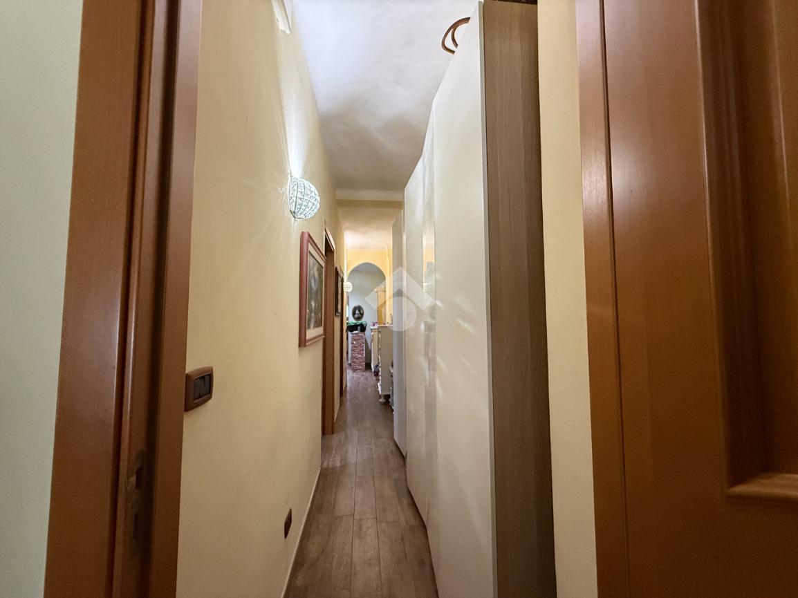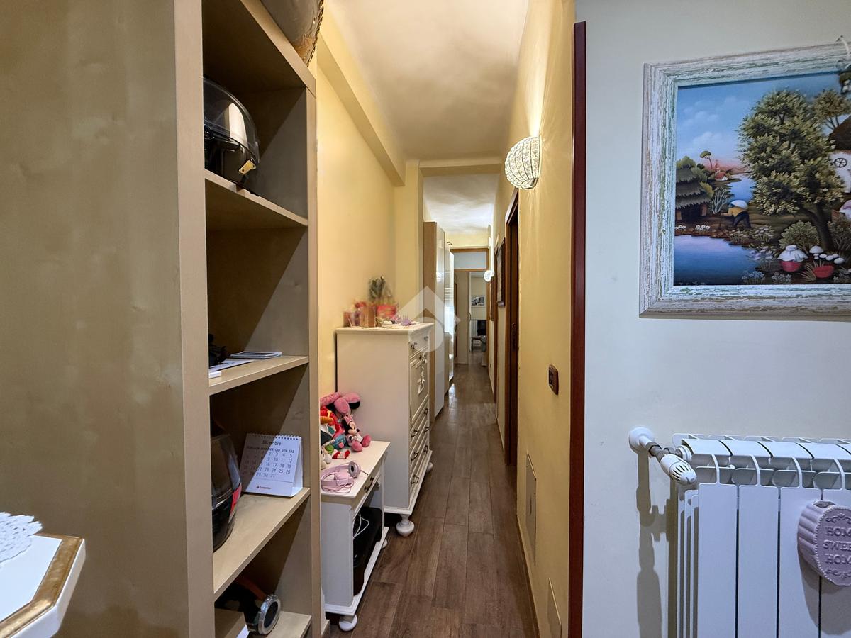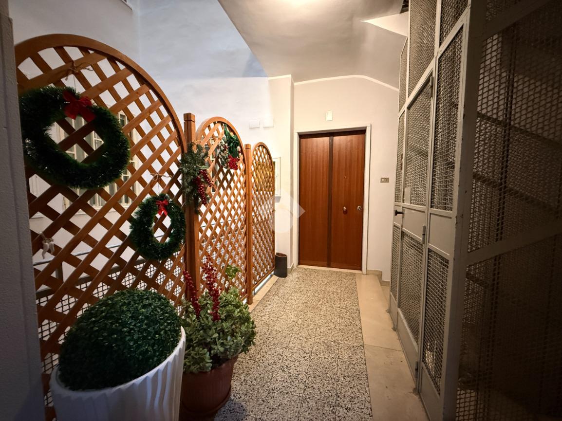 L’ingresso introduce in un piccolo disimpegno che separa in modo ordinato le diverse aree della casa. Sulla sinistra, attraversando un breve corridoio, si accede alla zona giorno, composta da un ampio soggiorno con cucina a vista, ambiente luminoso e ben arieggiato, dotato di affaccio interno che garantisce tranquillità e riservatezza.