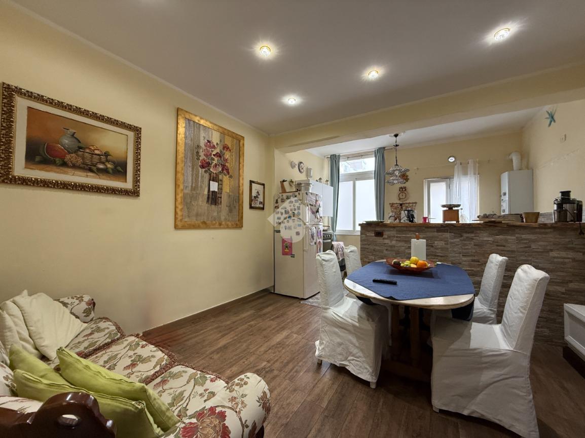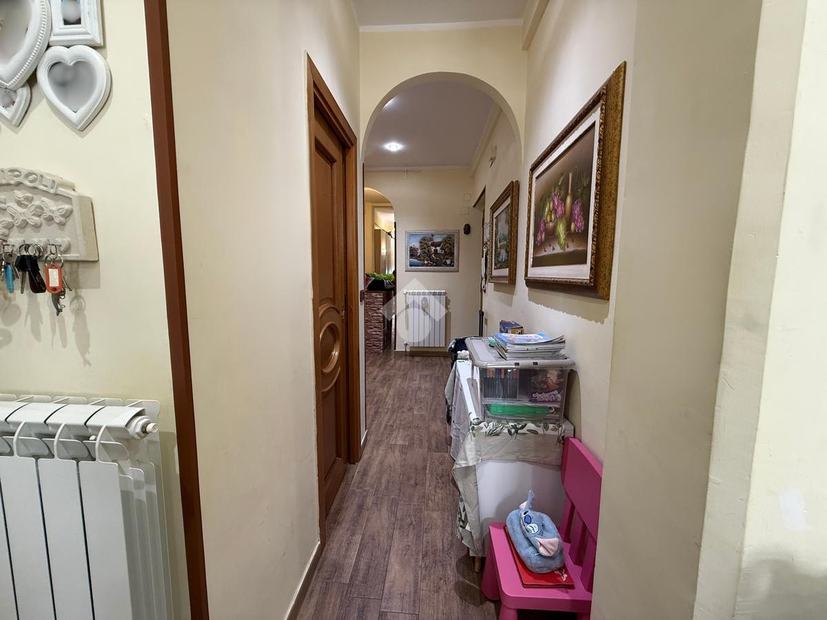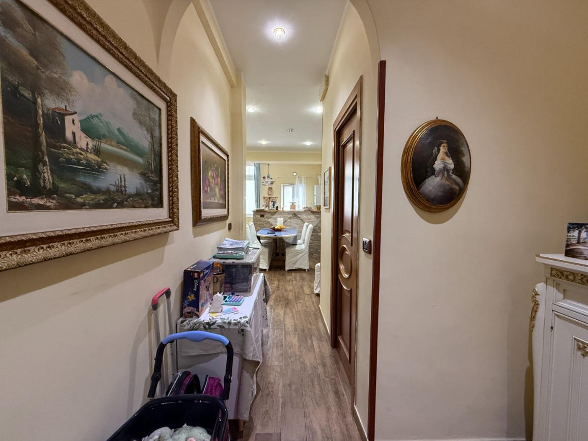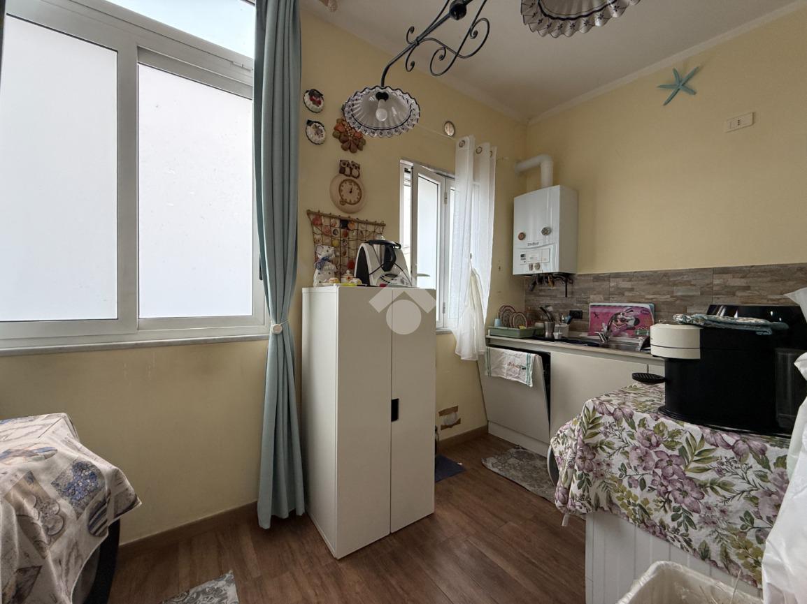 L’ingresso introduce in un piccolo disimpegno che separa in modo ordinato le diverse aree della casa. Sulla sinistra, attraversando un breve corridoio, si accede alla zona giorno, composta da un ampio soggiorno con cucina a vista, ambiente luminoso e ben arieggiato, dotato di affaccio interno che garantisce tranquillità e riservatezza.