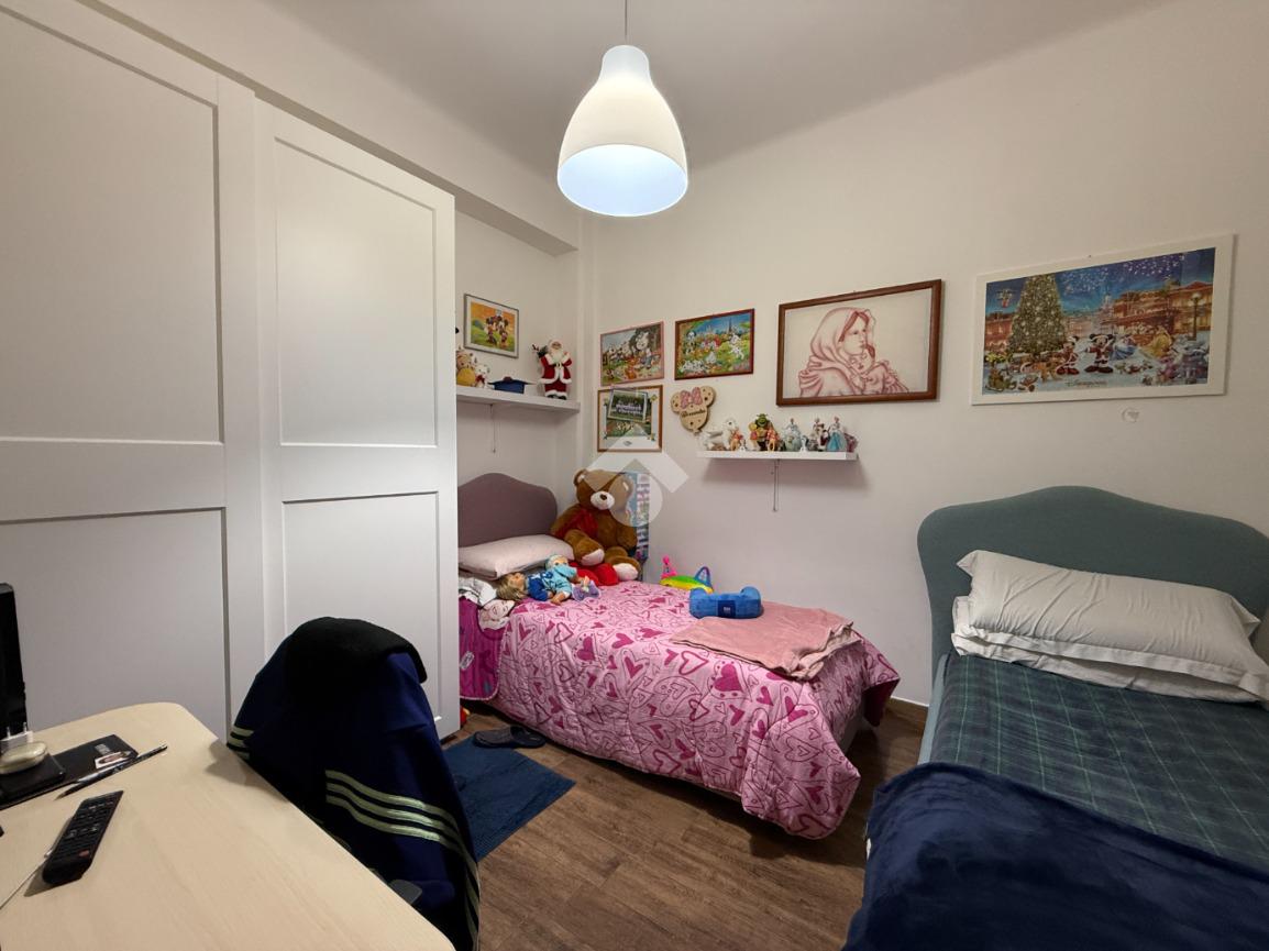 Proseguendo sulla destra si sviluppa la zona notte, composta da una prima cameretta e da una spaziosa camera da letto matrimoniale, servita da balcone con affaccio esterno. Completa la zona notte un bagno finestrato, dotato di doccia. E' presente, inoltre, un comodo ripostiglio, utile come spazio di deposito.