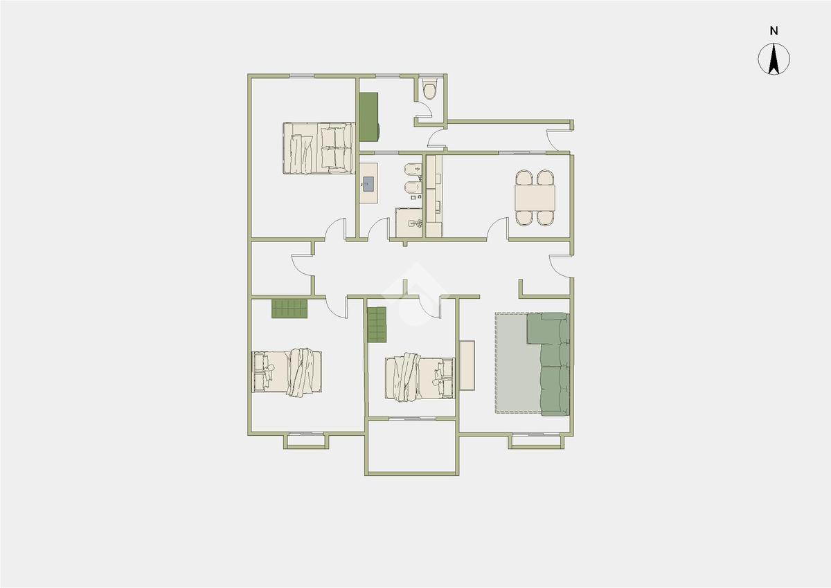 Proseguendo verso la zona notte, l’appartamento dispone di tre camere da letto, tutte ben proporzionate e luminose: una camera matrimoniale spaziosa e due camere singole, perfette per ospiti, bambini o per essere utilizzate come studio.