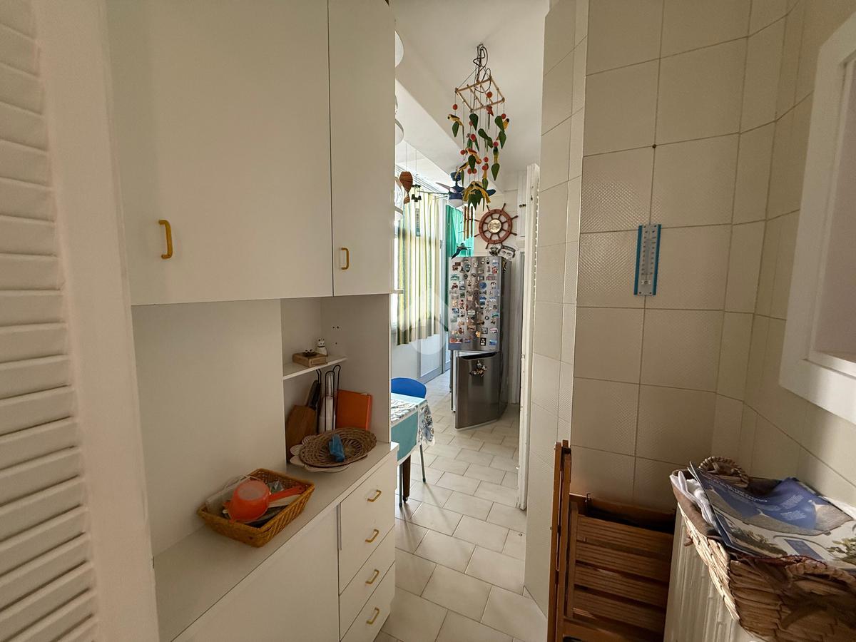 L’ingresso si apre su un accogliente soggiorno, dal quale si accede a una prima camera da letto con affaccio esterno su un ampio balcone, che regala una splendida vista sul mare. Adiacente a questa stanza si trova una seconda camera da letto, anch’essa con accesso diretto al balcone, perfetta come ulteriore spazio notte o studio privato.