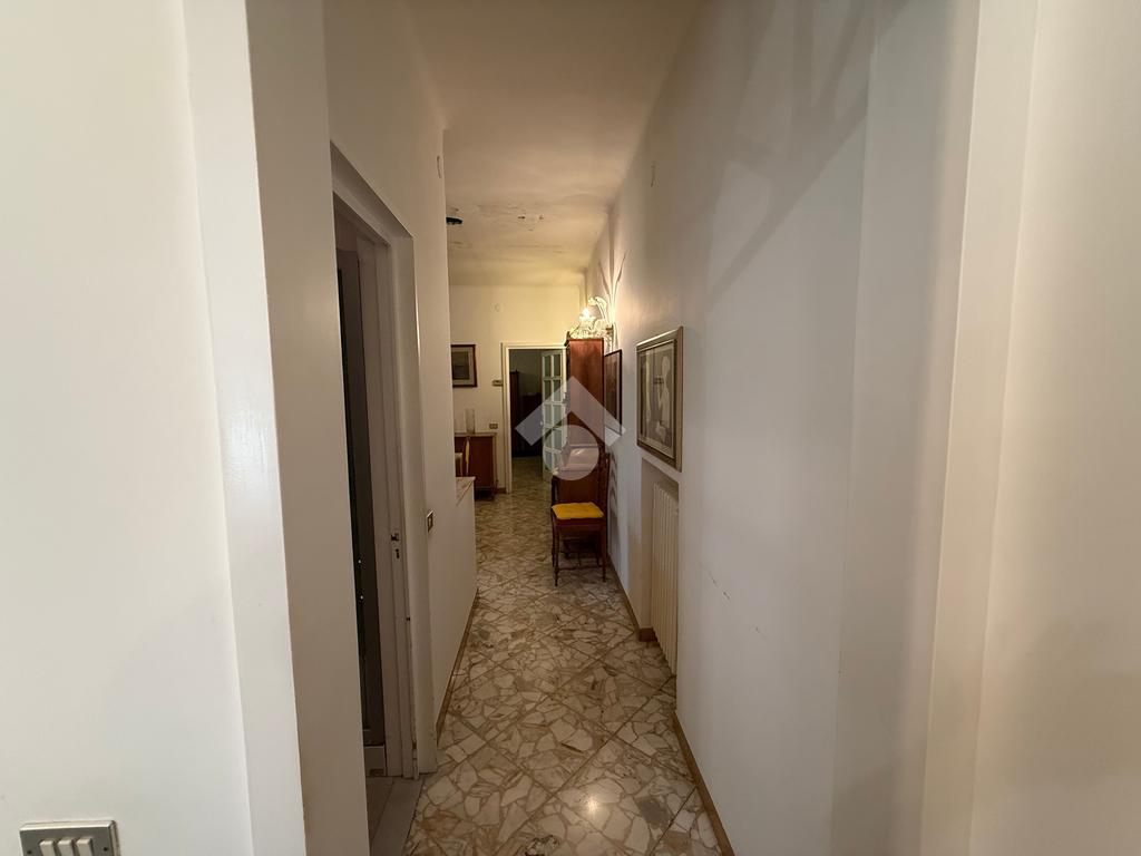Sul lato destro dell’appartamento è collocata una cucina luminosa, disposta su veranda e dotata di bagno di servizio, che assicura praticità e comfort. Sempre sulla destra, un corridoio conduce ad una spaziosa sala da pranzo con affaccio su veranda e ad una terza camera da letto anch’essa con uscita sulla veranda. Termina l’appartamento un bagno principale finestrato, anch’esso affacciato sulla veranda, completo di tutti i servizi.
