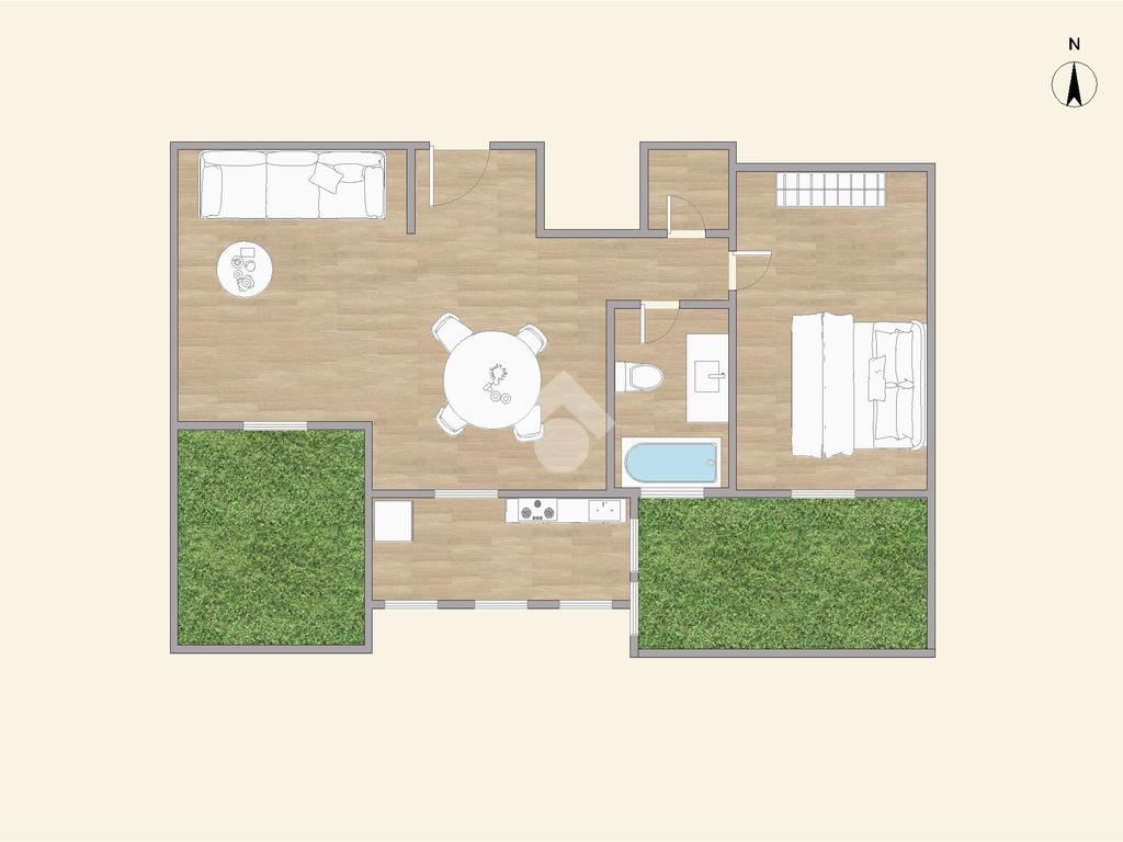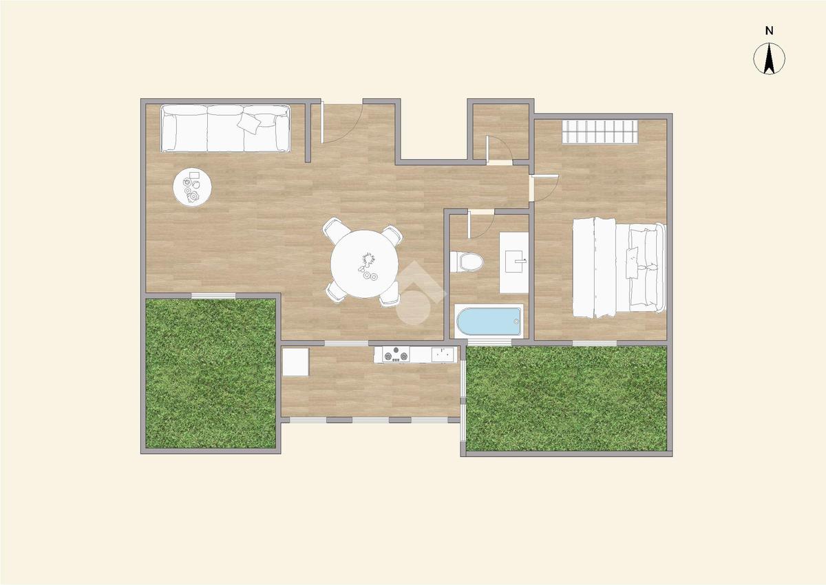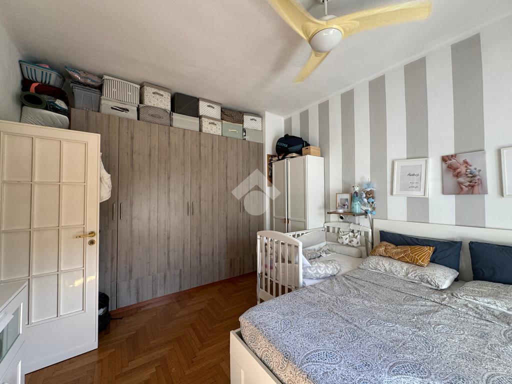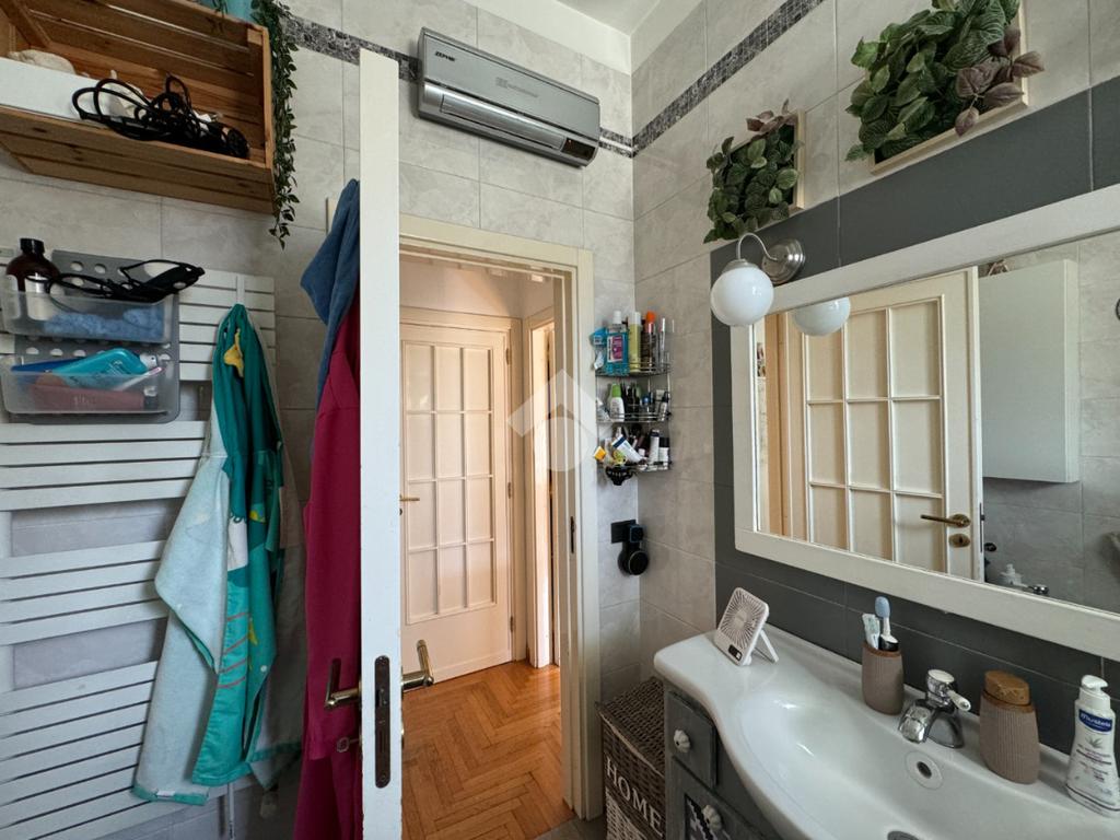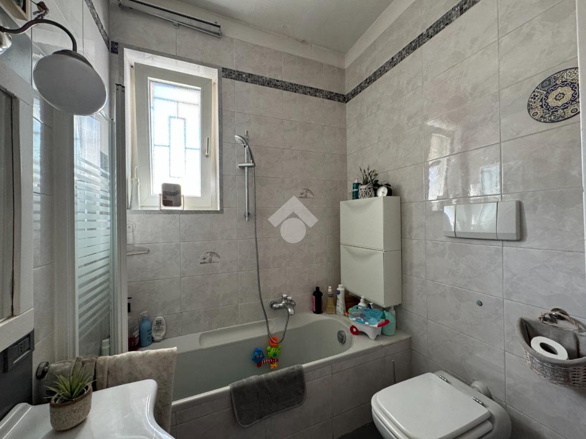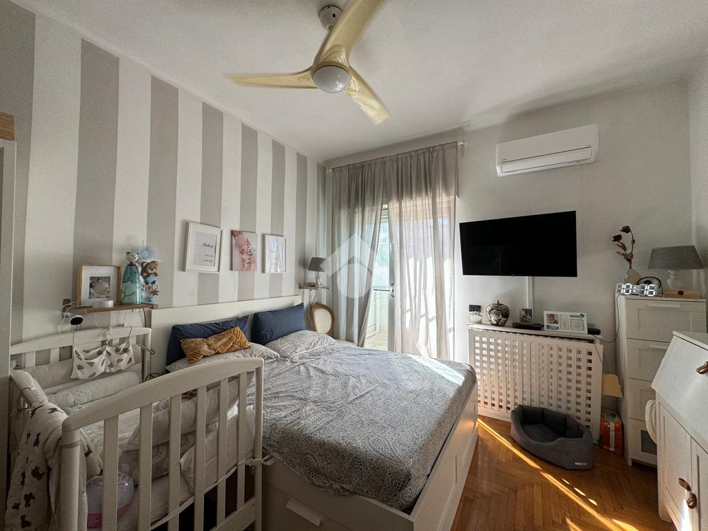 Alla destra dell’ingresso si sviluppa la zona notte, composta da una camera da letto matrimoniale con accesso a un ampio balcone esterno, ideale per godere di privacy e luce naturale. Completano la proprietà un bagno finestrato dotato di tutti i comfort e un pratico ripostiglio, utile per mantenere l’ordine in casa.