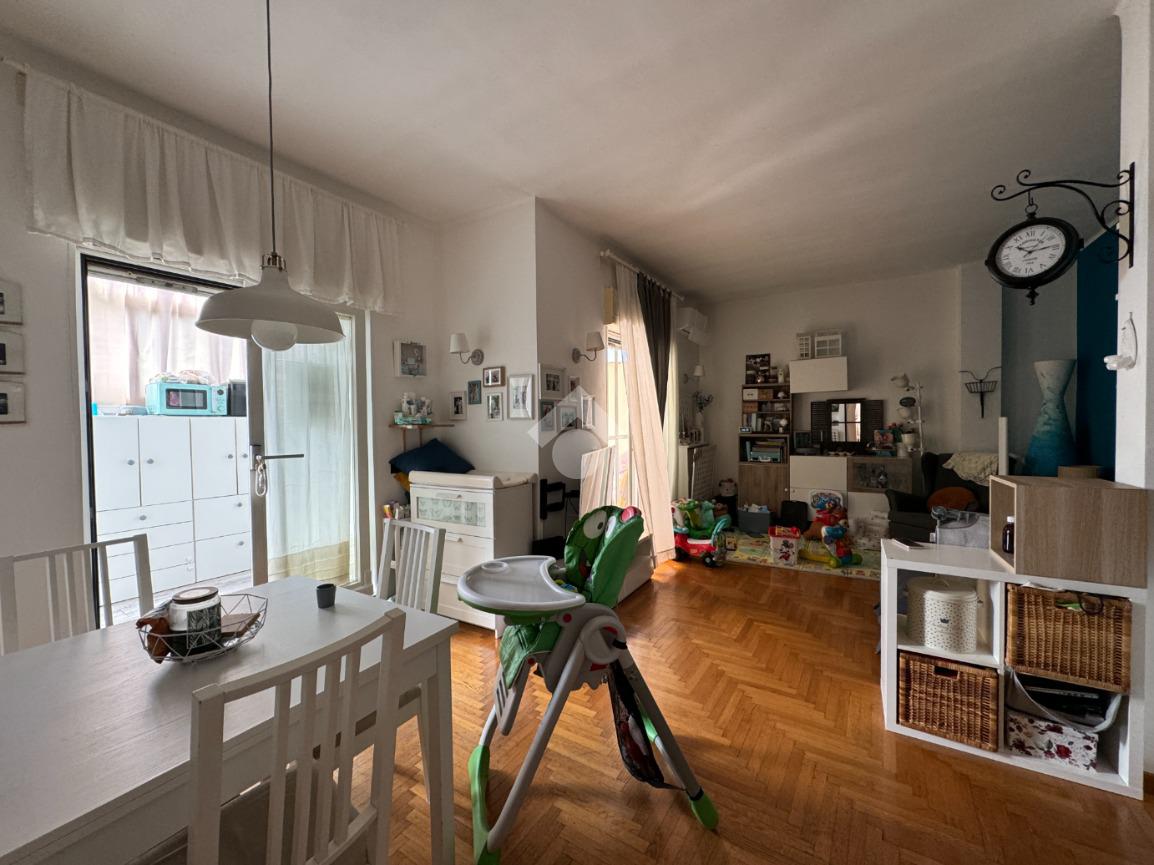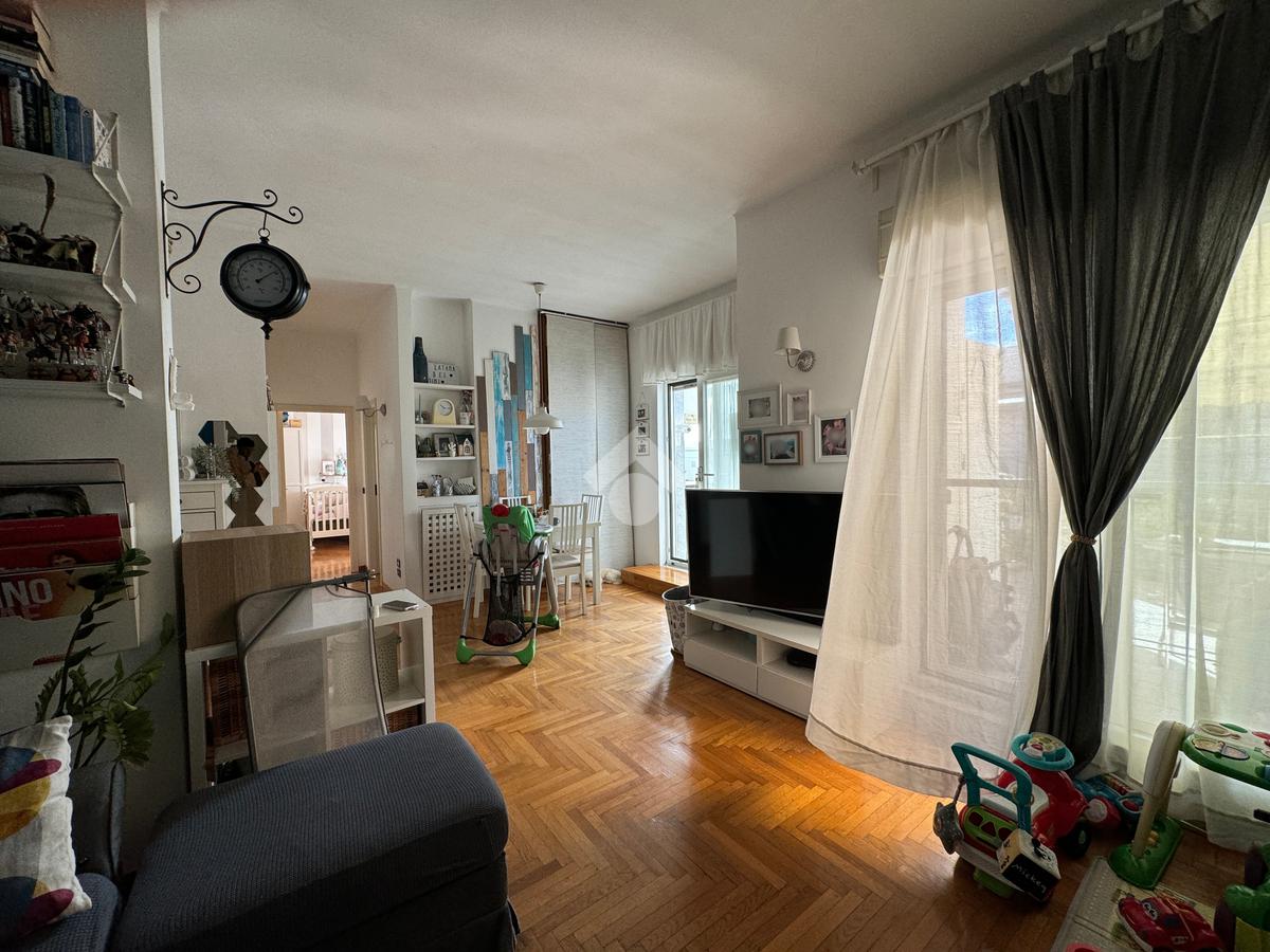 L’ingresso introduce in una zona giorno suddivisa in un’accogliente sala da pranzo e in una piacevole area living, ambienti ampi e ben illuminati che garantiscono massima fruibilità. Da qui si accede a un terrazzo con affaccio diretto su via Gabrieli, perfetto per momenti di relax all’aperto, e a una veranda, dove è presente una comoda cucina funzionale e ben organizzata.