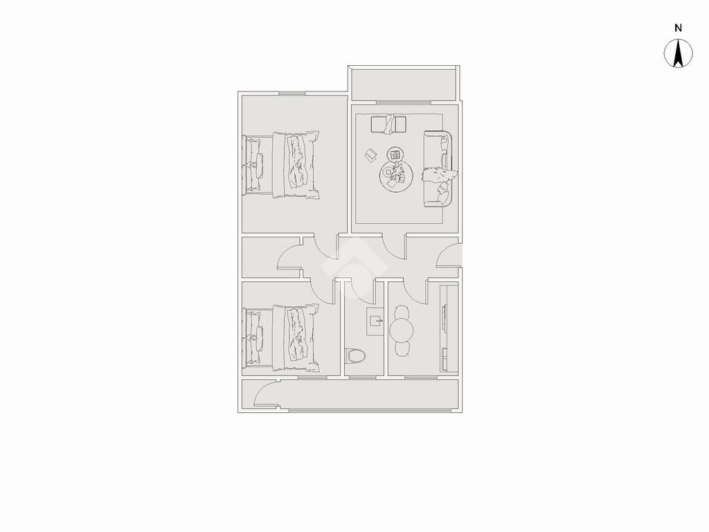L’appartamento dispone inoltre di un bagno principale finestrato, completo di box doccia, che garantisce comfort e funzionalità.