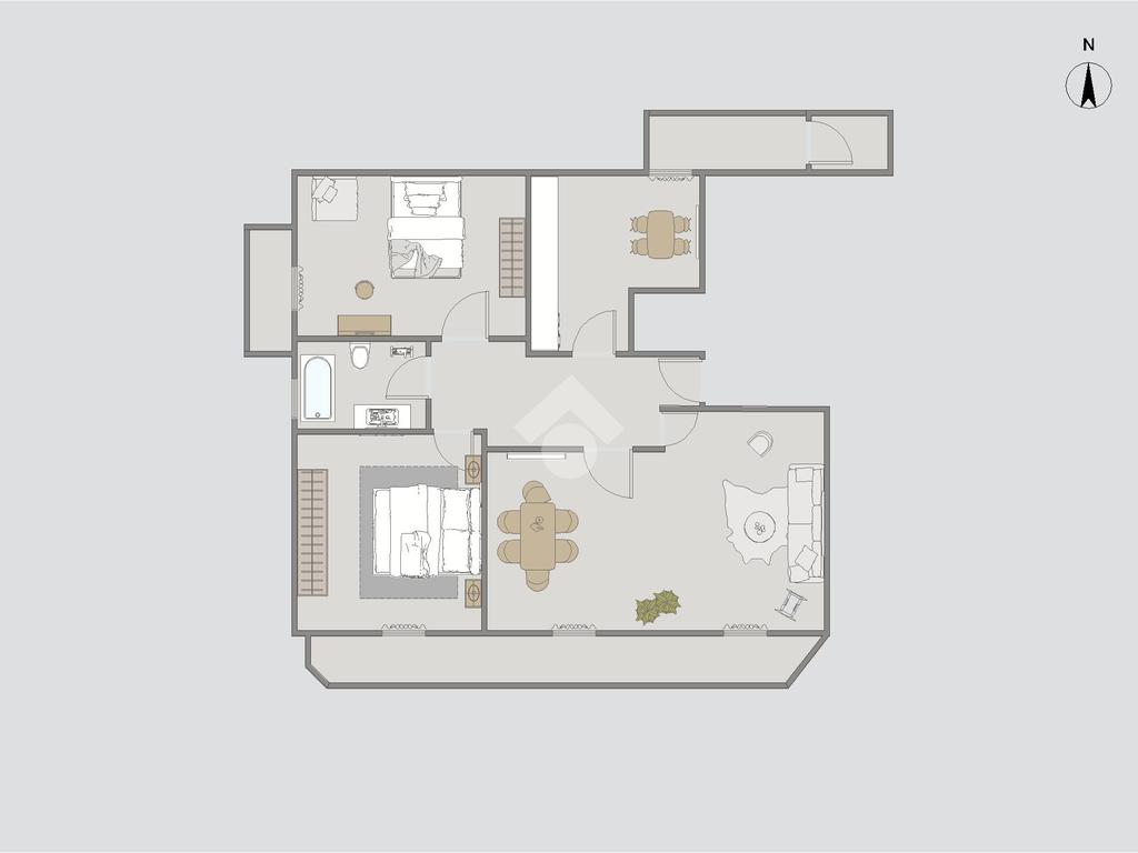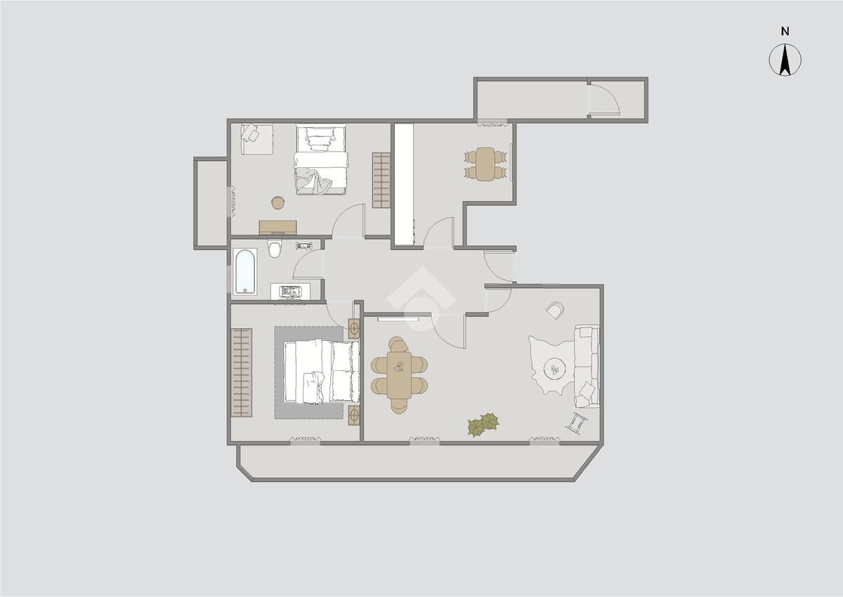 La zona notte è completata da una camera da letto matrimoniale, dotata di un ulteriore balcone con affaccio su via Pessina, e da un bagno finestrato con vasca, comodo e ben distribuito.