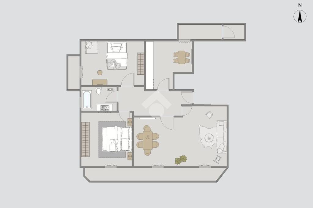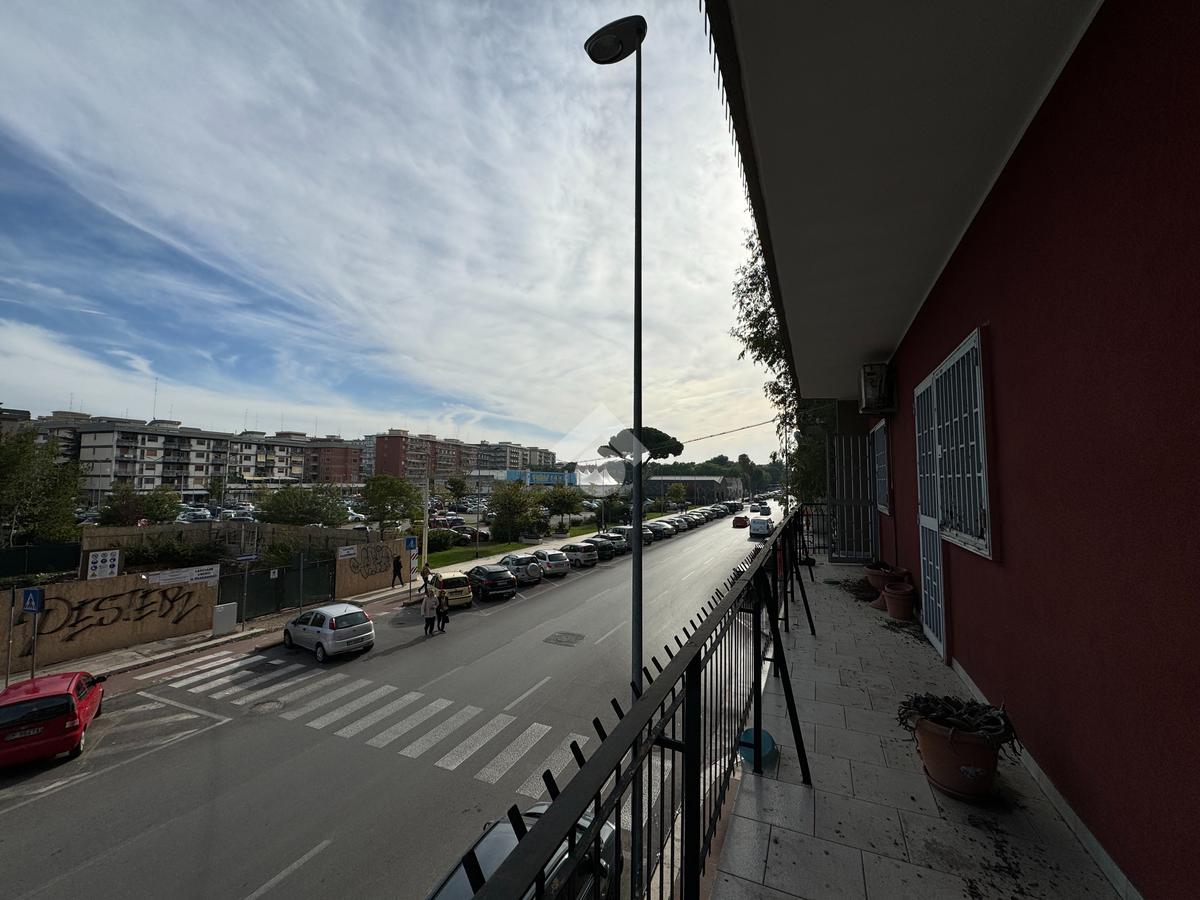 Sulla destra si sviluppa un soggiorno doppio, ampio e luminoso, dotato di balcone con affaccio su via della Costituente, perfetto per vivere la zona giorno con comfort e convivialità. Proseguendo, si incontra una prima camera, attualmente adibita a sala da pranzo, anch’essa con affaccio esterno tramite balcone comunicante con il soggiorno.