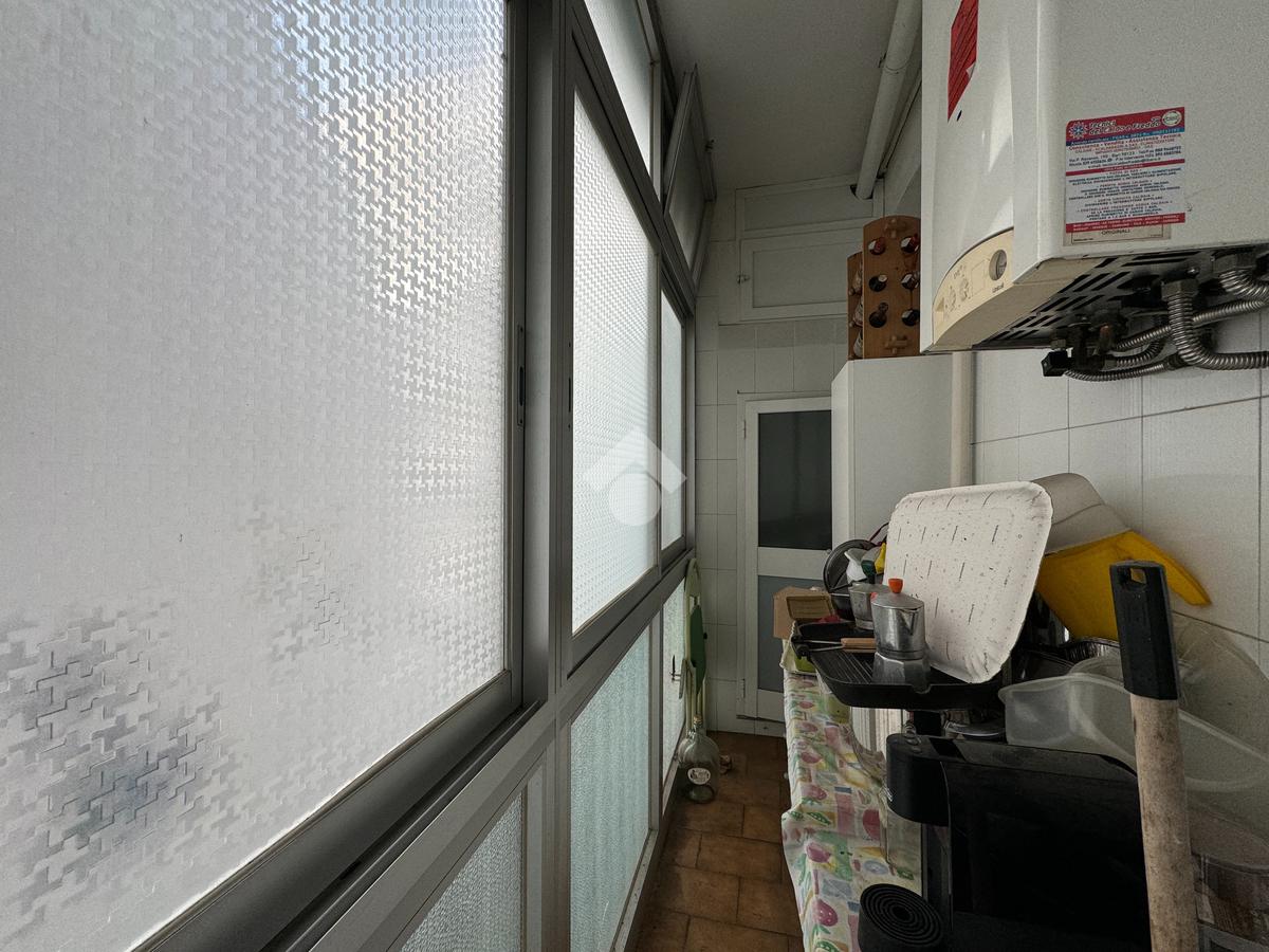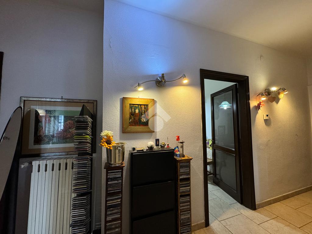 L’ingresso si apre su un piccolo corridoio con disimpegno, dal quale si accede ai vari ambienti della casa. Sulla sinistra è collocata una cucina abitabile, funzionale e ben organizzata, servita da una veranda con affaccio interno, ideale come spazio aggiuntivo per lavanderia o dispensa.