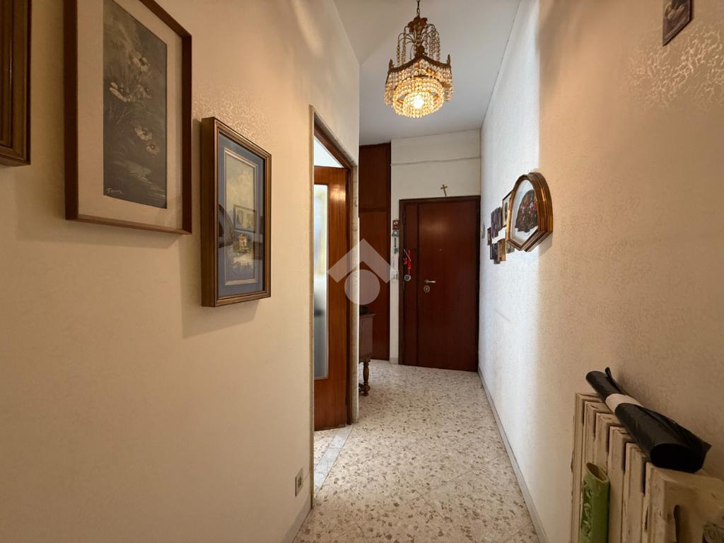 L’ingresso conduce a un lungo corridoio che disimpegna in modo ordinato i vari ambienti della casa. Subito sulla destra si trova la prima camera da letto, dotata di balcone con affaccio esterno su Viale Imperatore Traiano. Proseguendo lungo il corridoio, sempre sul lato destro, si accede al soggiorno, anch’esso caratterizzato da un affaccio esterno tramite balcone che conferisce grande luminosità all’ambiente.