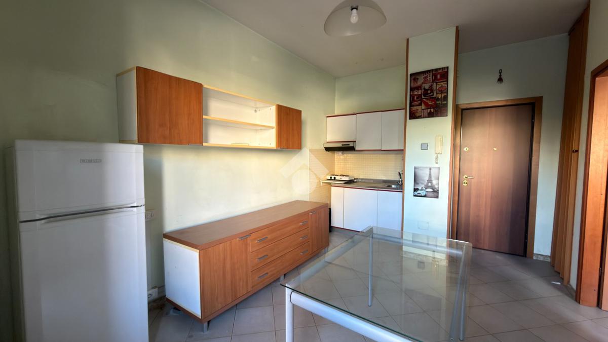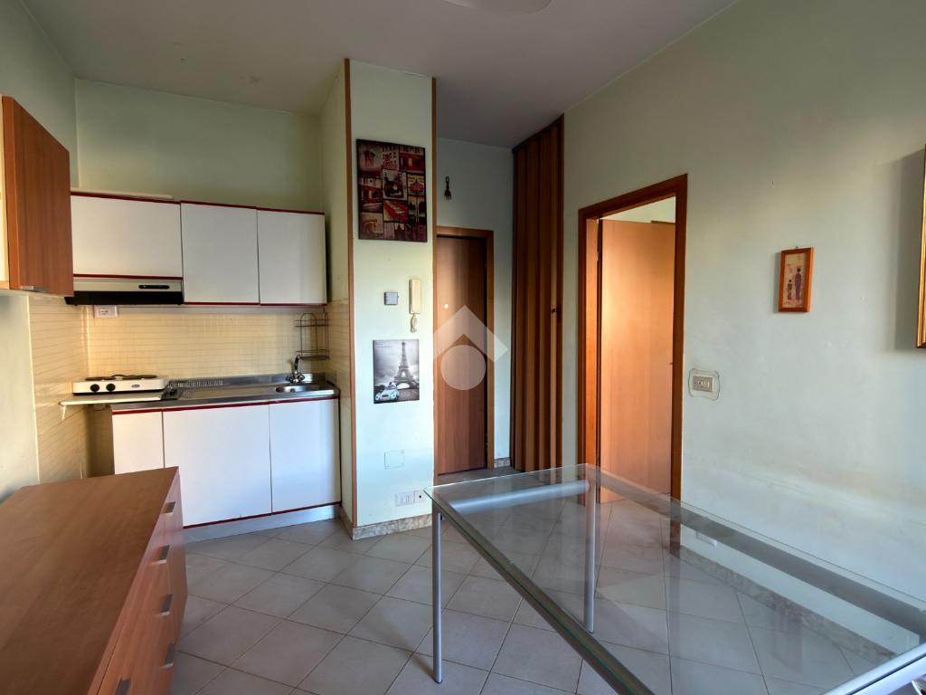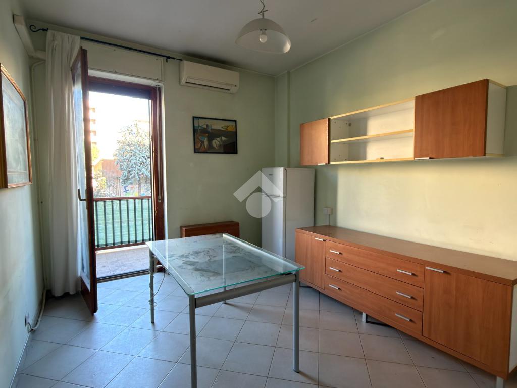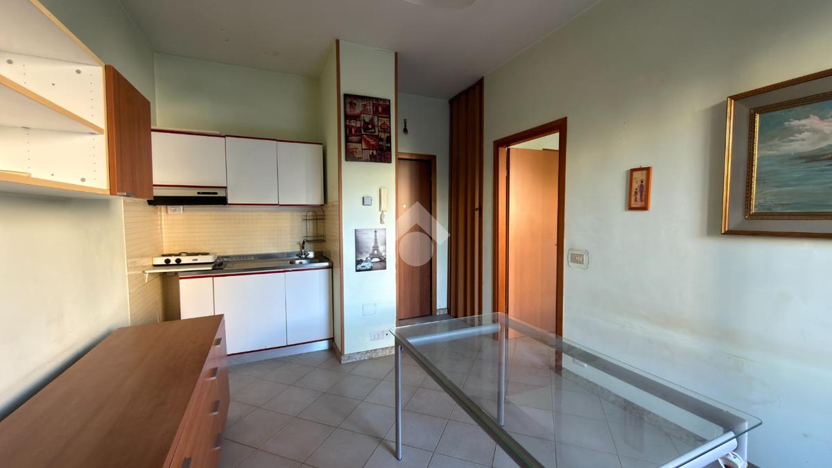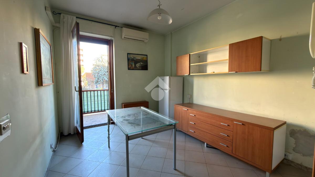 L’ingresso introduce direttamente nella zona giorno con angolo cottura, dotata di balcone con affaccio su viale Luigi Einaudi, elemento che garantisce buona esposizione e ariosità.