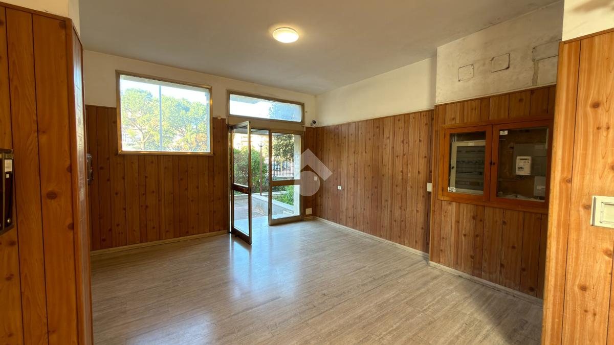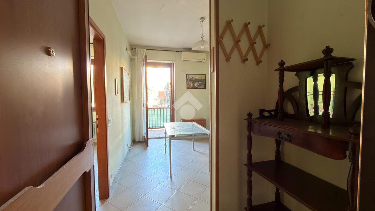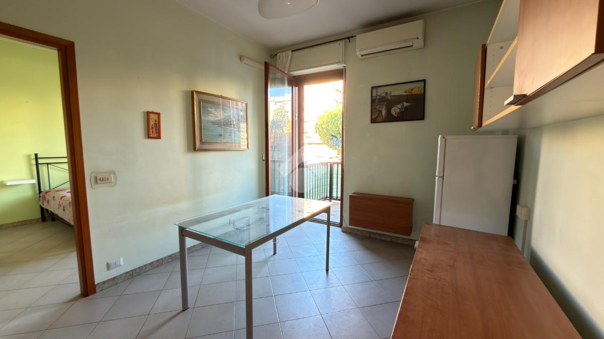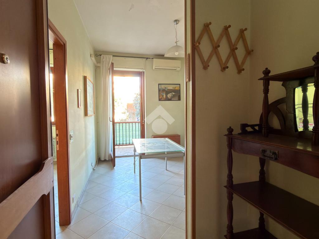 L’ingresso introduce direttamente nella zona giorno con angolo cottura, dotata di balcone con affaccio su viale Luigi Einaudi, elemento che garantisce buona esposizione e ariosità.