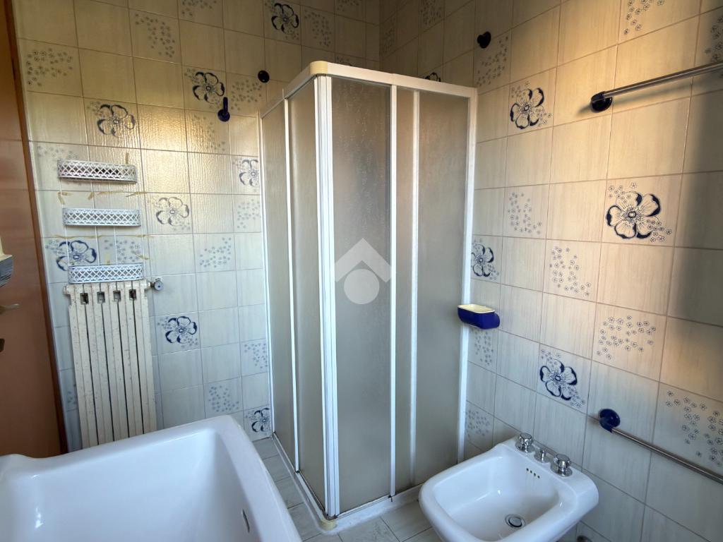 Sul lato sinistro dell’immobile si sviluppa la zona notte, composta da una camera da letto matrimoniale di comode dimensioni ed un bagno finestrato con doccia, rifinito in modo pratico e funzionale.