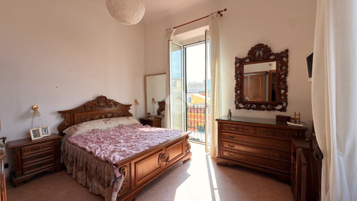 La zona notte è composta da una spaziosa camera da letto matrimoniale, particolarmente luminosa grazie alla sua esposizione angolare e alla presenza di due balconi ad angolo che donano all’ambiente maggiore ariosità e luce naturale.