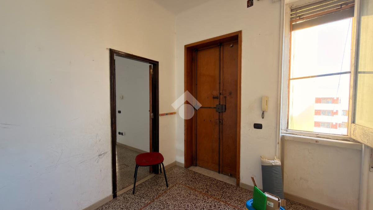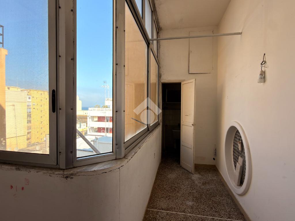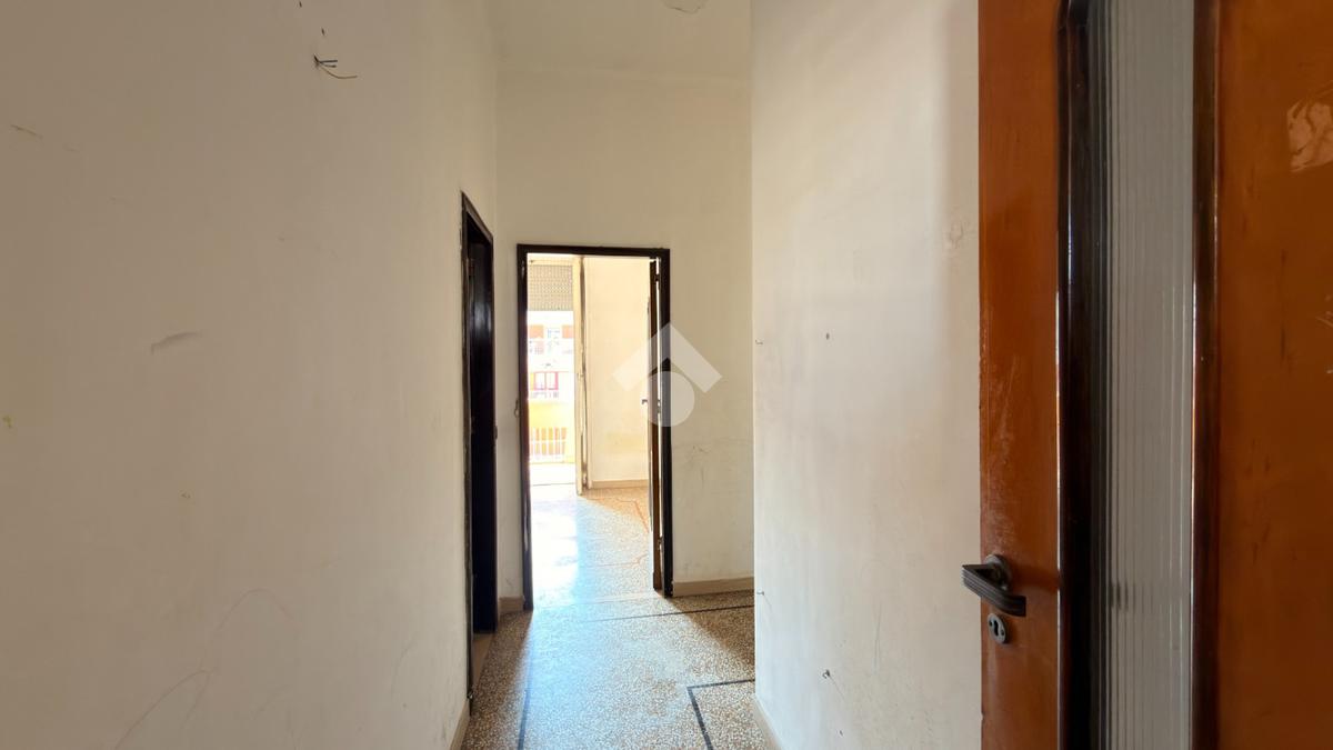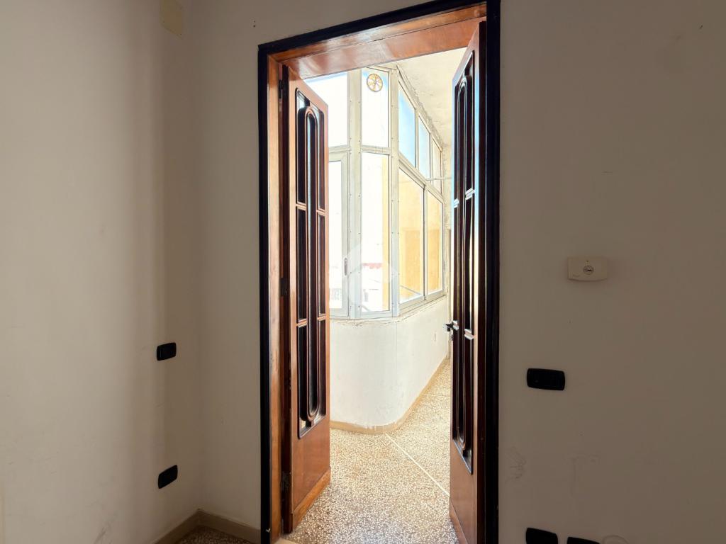 L’ingresso dell’abitazione accoglie in un ambiente luminoso grazie alla presenza di una finestra con affaccio su via Mameli. Proseguendo sulla destra si apre un ampio soggiorno, spazio confortevole e ben arieggiato, caratterizzato da un affaccio interno con vista mare tramite veranda, ambiente che dona ulteriore luce e profondità alla zona giorno. Sulla veranda è presente un bagno di servizio, utilizzabile anche come pratica zona lavanderia.