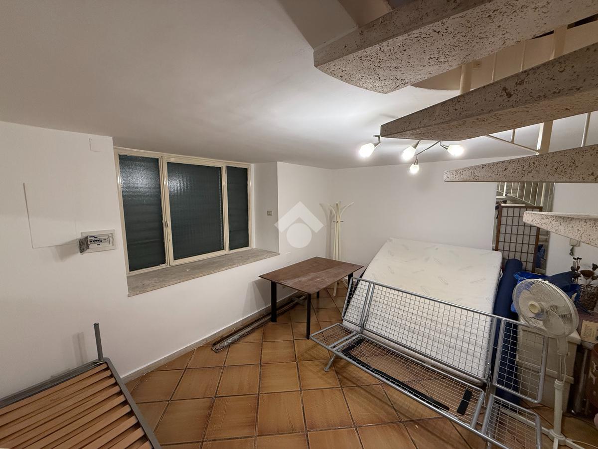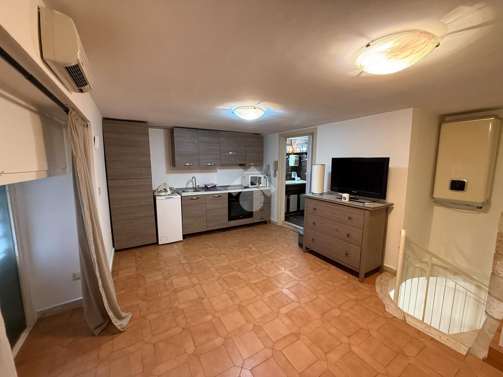 Tramite una scala a chiocciola interna si accede al piano superiore, dove si sviluppa un secondo ambiente composto da una comoda cucina, anch’essa dotata di finestra con affaccio esterno, e da un bagno completo di doccia, funzionale e ben distribuito.