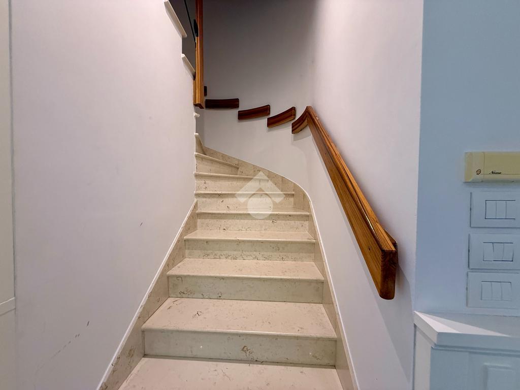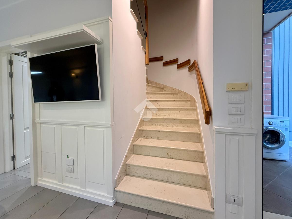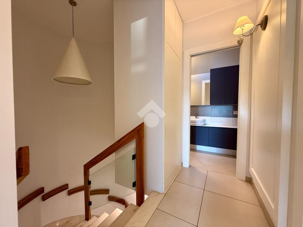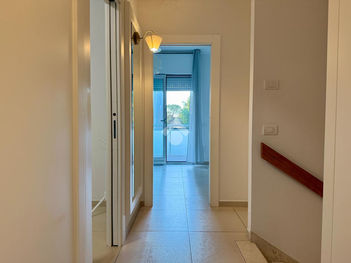 Una scala interna conduce al piano superiore, dove un disimpegno distribuisce gli ambienti della zona notte: un ampia camera da letto matrimoniale con affaccio esterno tramite balcone, una seconda camera da letto con finestra ed infine un secondo bagno, finestrato e dotato di doccia, curato nei dettagli e perfettamente funzionale.